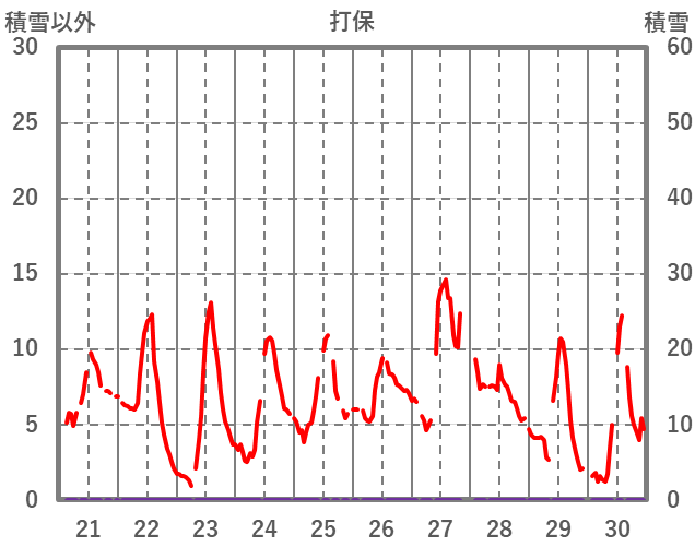 | 日 | 時 | 気温 | 降水 | 風向/風速 | 日照 | 積雪 | 降雪 |