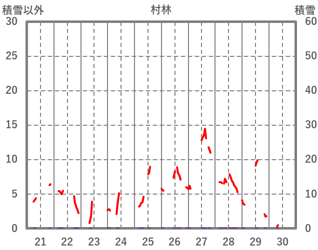 | 日 | 時 | 気温 | 降水 | 風向/風速 | 日照 | 積雪 | 降雪 |