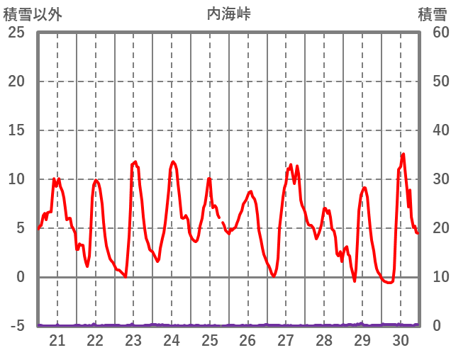 | 日 | 時 | 気温 | 降水 | 風向/風速 | 日照 | 積雪 | 降雪 |