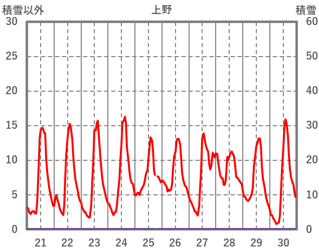 | 日 | 時 | 気温 | 降水 | 風向/風速 | 日照 | 積雪 | 降雪 |
