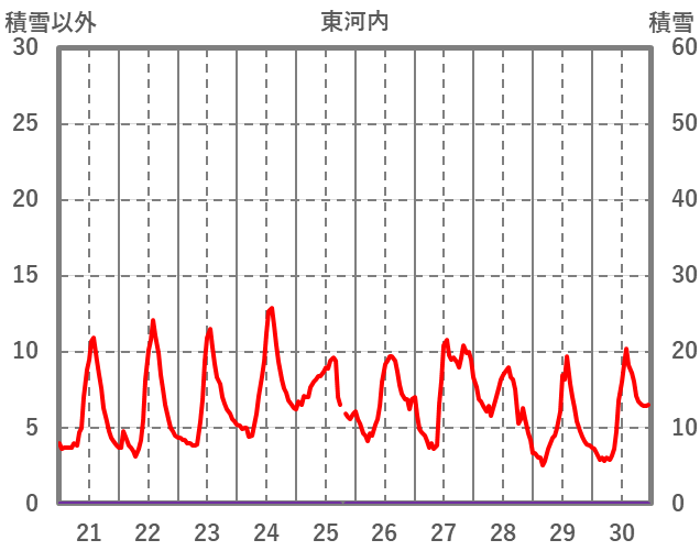 | 日 | 時 | 気温 | 降水 | 風向/風速 | 日照 | 積雪 | 降雪 |