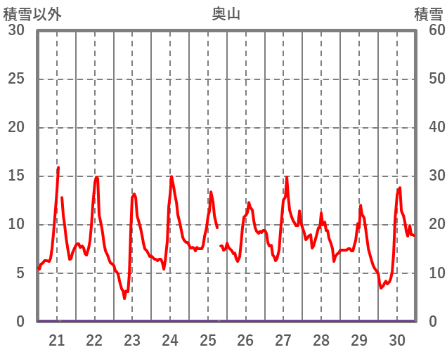 | 日 | 時 | 気温 | 降水 | 風向/風速 | 日照 | 積雪 | 降雪 |