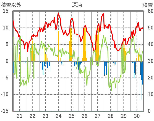 | 日 | 時 | 気温 | 降水 | 風向/風速 | 日照 | 積雪 | 降雪 |