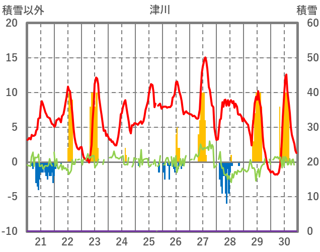 | 日 | 時 | 気温 | 降水 | 風向/風速 | 日照 | 積雪 | 降雪 |