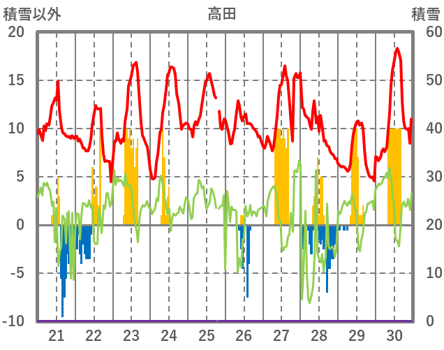 | 日 | 時 | 気温 | 降水 | 風向/風速 | 日照 | 積雪 | 降雪 |