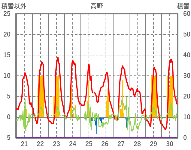 | 日 | 時 | 気温 | 降水 | 風向/風速 | 日照 | 積雪 | 降雪 |
