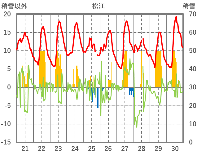 | 日 | 時 | 気温 | 降水 | 風向/風速 | 日照 | 積雪 | 降雪 |