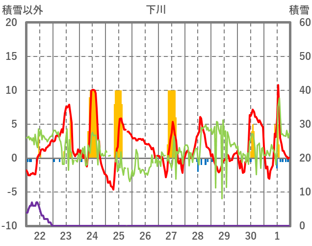 | 日 | 時 | 気温 | 降水 | 風向/風速 | 日照 | 積雪 | 降雪 |