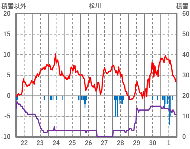 | 日 | 時 | 気温 | 降水 | 風向/風速 | 日照 | 積雪 | 降雪 |