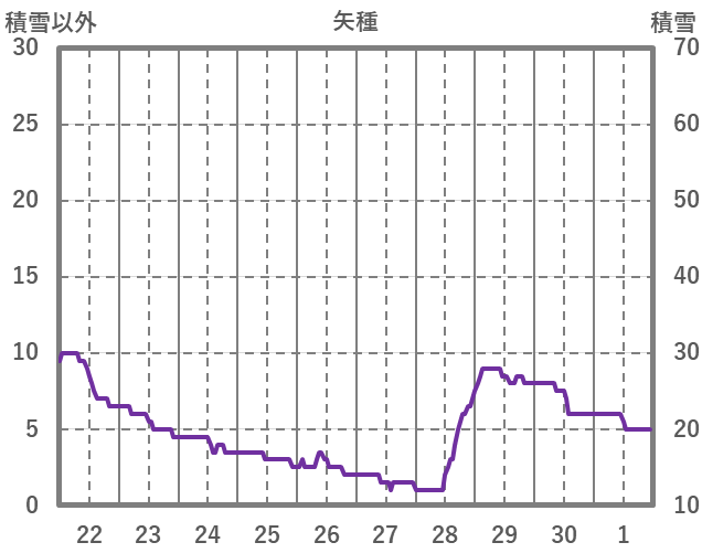 | 日 | 時 | 気温 | 降水 | 風向/風速 | 日照 | 積雪 | 降雪 |