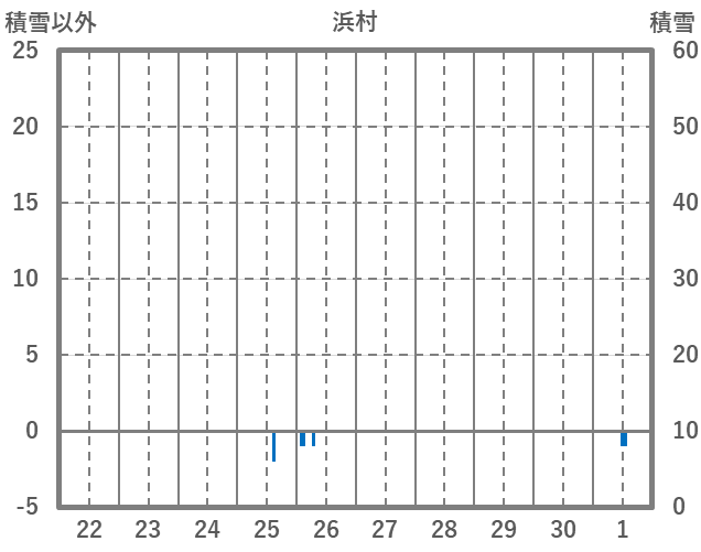 | 日 | 時 | 気温 | 降水 | 風向/風速 | 日照 | 積雪 | 降雪 |