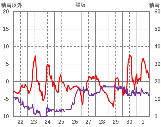| 日 | 時 | 気温 | 降水 | 風向/風速 | 日照 | 積雪 | 降雪 |