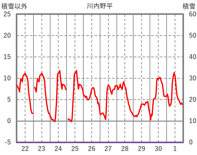 | 日 | 時 | 気温 | 降水 | 風向/風速 | 日照 | 積雪 | 降雪 |