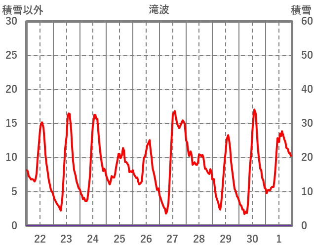 | 日 | 時 | 気温 | 降水 | 風向/風速 | 日照 | 積雪 | 降雪 |