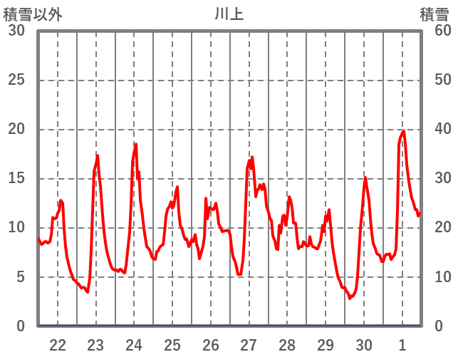 | 日 | 時 | 気温 | 降水 | 風向/風速 | 日照 | 積雪 | 降雪 |