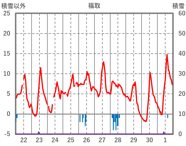 | 日 | 時 | 気温 | 降水 | 風向/風速 | 日照 | 積雪 | 降雪 |