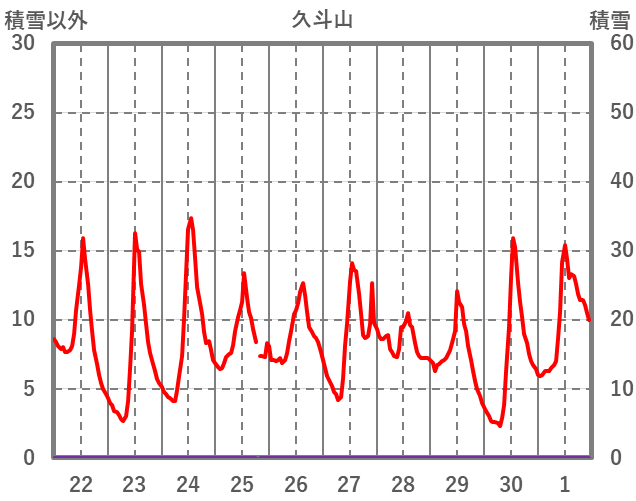 | 日 | 時 | 気温 | 降水 | 風向/風速 | 日照 | 積雪 | 降雪 |