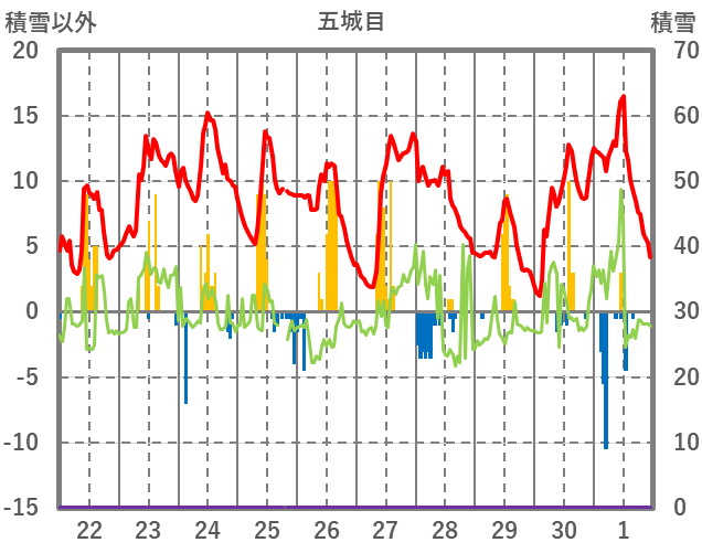| 日 | 時 | 気温 | 降水 | 風向/風速 | 日照 | 積雪 | 降雪 |