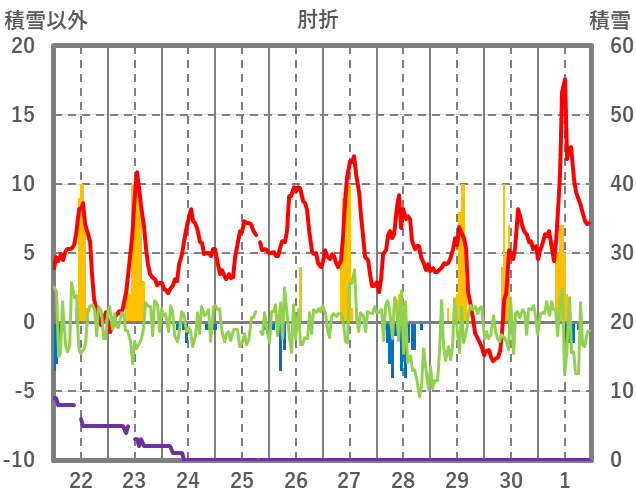 | 日 | 時 | 気温 | 降水 | 風向/風速 | 日照 | 積雪 | 降雪 |