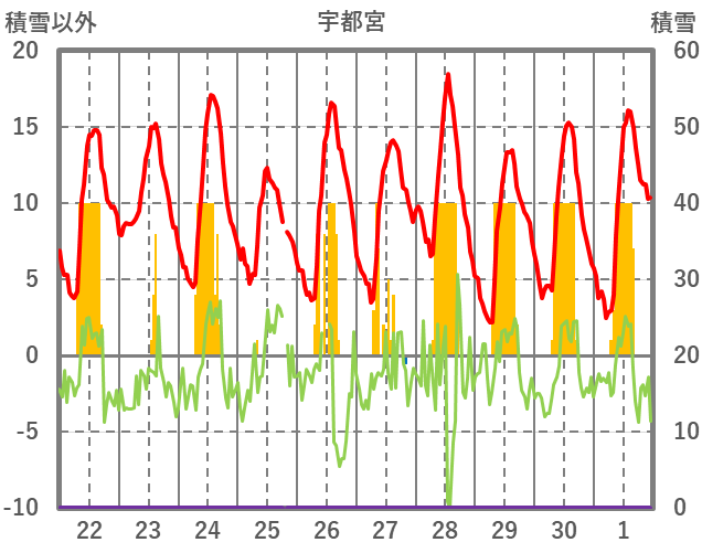| 日 | 時 | 気温 | 降水 | 風向/風速 | 日照 | 積雪 | 降雪 |