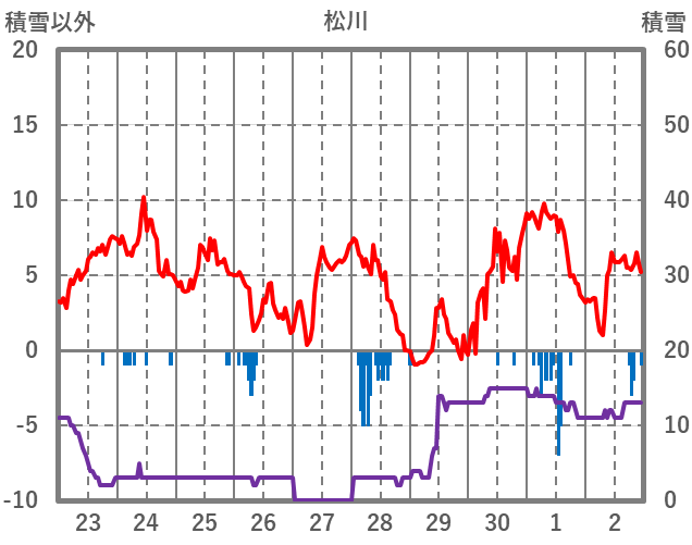 | 日 | 時 | 気温 | 降水 | 風向/風速 | 日照 | 積雪 | 降雪 |