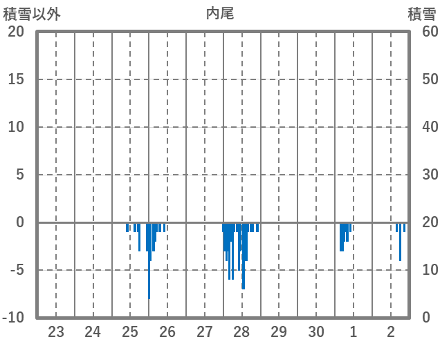 | 日 | 時 | 気温 | 降水 | 風向/風速 | 日照 | 積雪 | 降雪 |