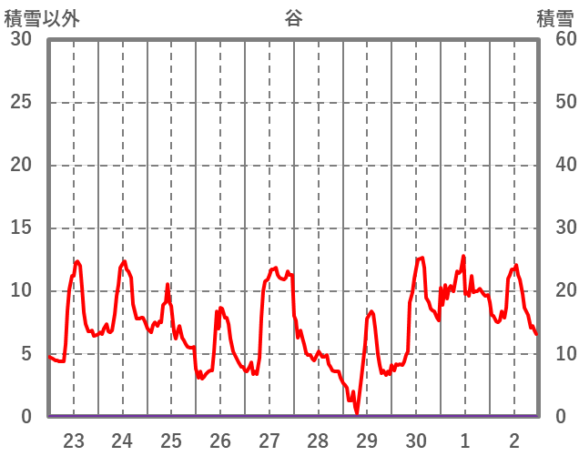 | 日 | 時 | 気温 | 降水 | 風向/風速 | 日照 | 積雪 | 降雪 |