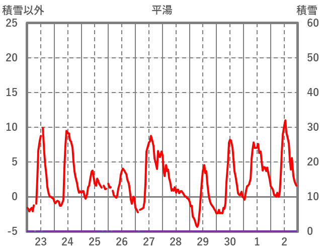 | 日 | 時 | 気温 | 降水 | 風向/風速 | 日照 | 積雪 | 降雪 |