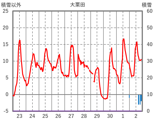 | 日 | 時 | 気温 | 降水 | 風向/風速 | 日照 | 積雪 | 降雪 |