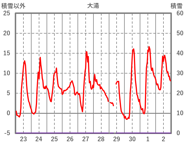 | 日 | 時 | 気温 | 降水 | 風向/風速 | 日照 | 積雪 | 降雪 |