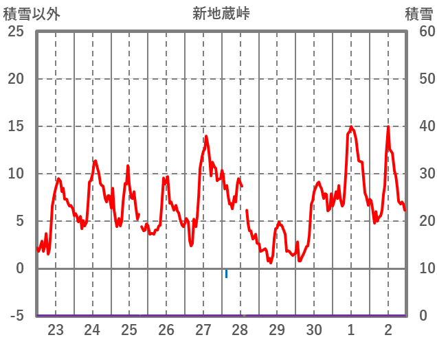 | 日 | 時 | 気温 | 降水 | 風向/風速 | 日照 | 積雪 | 降雪 |
