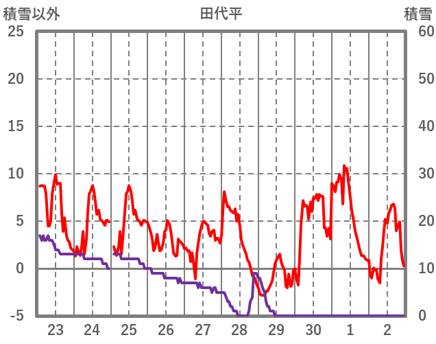 | 日 | 時 | 気温 | 降水 | 風向/風速 | 日照 | 積雪 | 降雪 |
