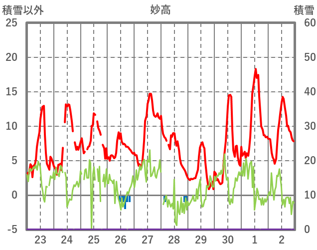 | 日 | 時 | 気温 | 降水 | 風向/風速 | 日照 | 積雪 | 降雪 |