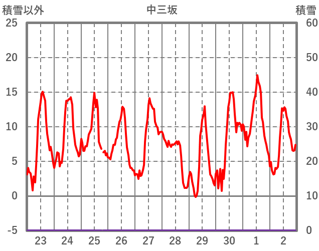 | 日 | 時 | 気温 | 降水 | 風向/風速 | 日照 | 積雪 | 降雪 |