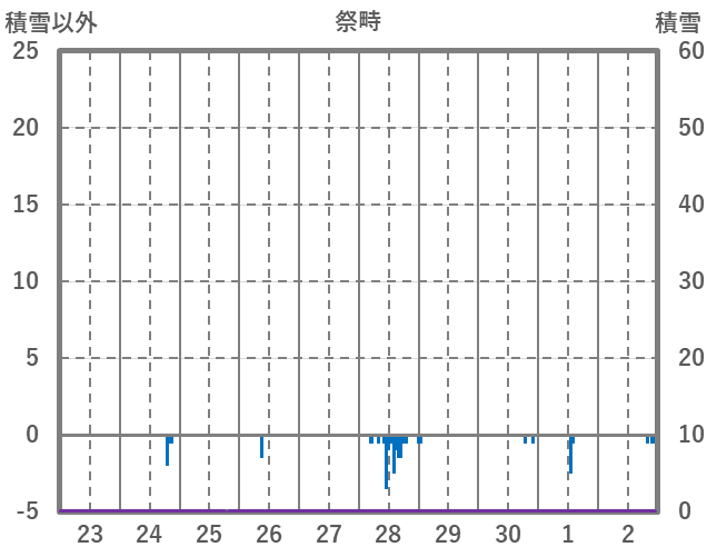 | 日 | 時 | 気温 | 降水 | 風向/風速 | 日照 | 積雪 | 降雪 |