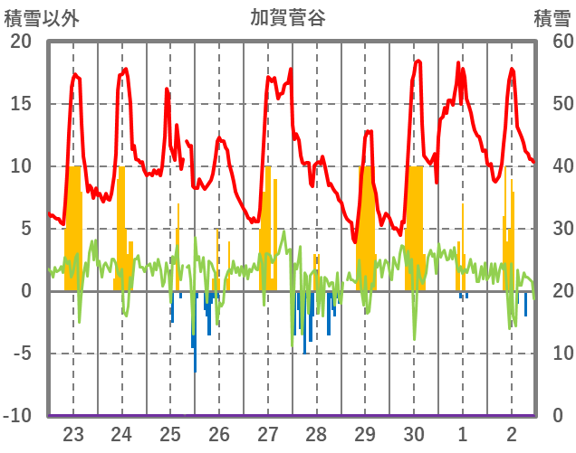 | 日 | 時 | 気温 | 降水 | 風向/風速 | 日照 | 積雪 | 降雪 |