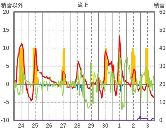 | 日 | 時 | 気温 | 降水 | 風向/風速 | 日照 | 積雪 | 降雪 |