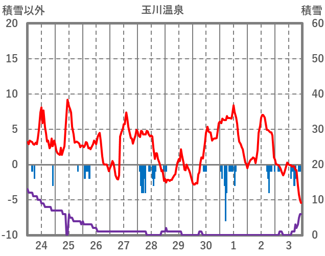 | 日 | 時 | 気温 | 降水 | 風向/風速 | 日照 | 積雪 | 降雪 |