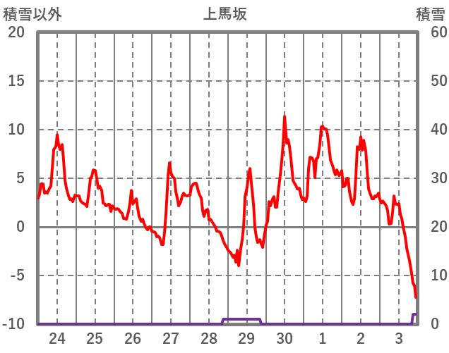 | 日 | 時 | 気温 | 降水 | 風向/風速 | 日照 | 積雪 | 降雪 |
