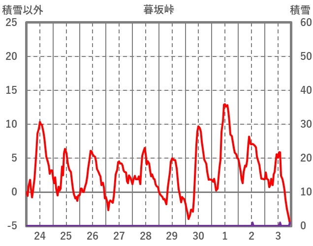 | 日 | 時 | 気温 | 降水 | 風向/風速 | 日照 | 積雪 | 降雪 |