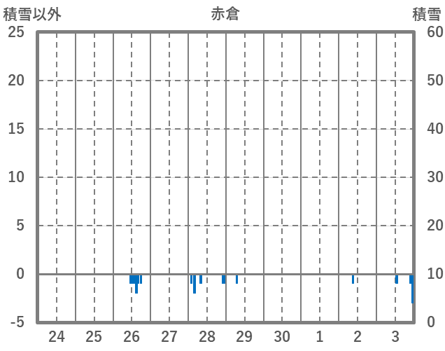 | 日 | 時 | 気温 | 降水 | 風向/風速 | 日照 | 積雪 | 降雪 |