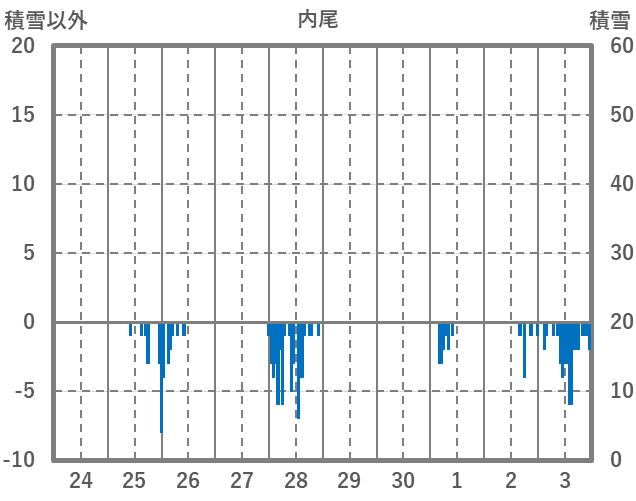 | 日 | 時 | 気温 | 降水 | 風向/風速 | 日照 | 積雪 | 降雪 |