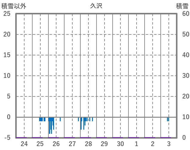 | 日 | 時 | 気温 | 降水 | 風向/風速 | 日照 | 積雪 | 降雪 |