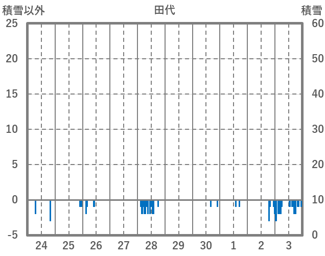 | 日 | 時 | 気温 | 降水 | 風向/風速 | 日照 | 積雪 | 降雪 |