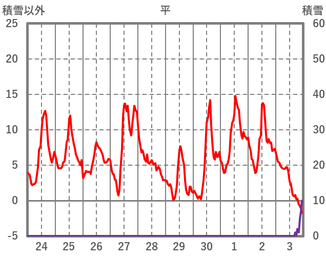 | 日 | 時 | 気温 | 降水 | 風向/風速 | 日照 | 積雪 | 降雪 |
