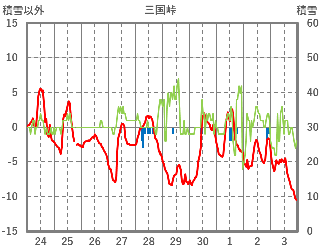 | 日 | 時 | 気温 | 降水 | 風向/風速 | 日照 | 積雪 | 降雪 |