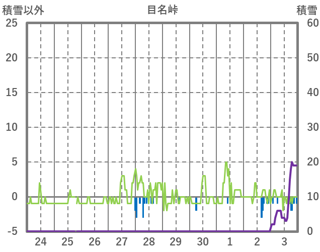 | 日 | 時 | 気温 | 降水 | 風向/風速 | 日照 | 積雪 | 降雪 |