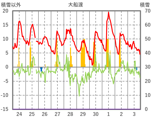 | 日 | 時 | 気温 | 降水 | 風向/風速 | 日照 | 積雪 | 降雪 |