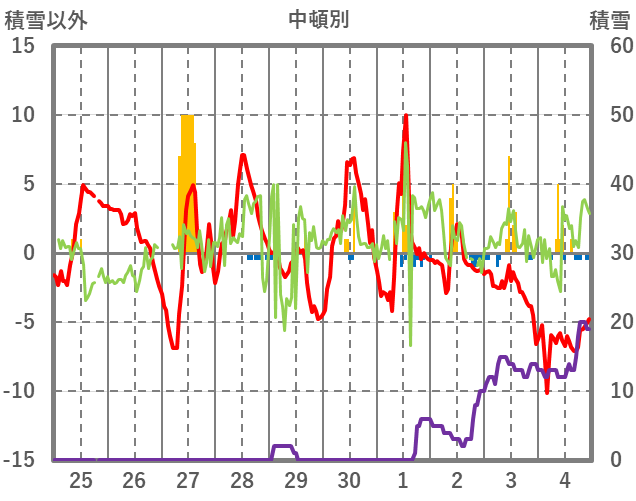 | 日 | 時 | 気温 | 降水 | 風向/風速 | 日照 | 積雪 | 降雪 |