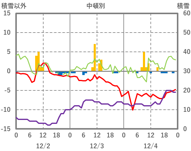 | 日 | 時 | 気温 | 降水 | 風向/風速 | 日照 | 積雪 | 降雪 |